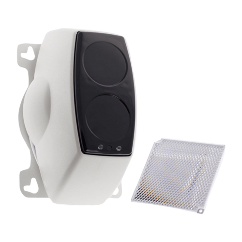 גלאי עשן קווי הפועל בעיקרון החלשת קרן אור אינפרא אדומה למרחק 50 מ' או 100 מ'