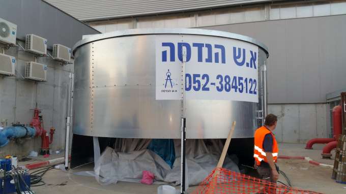 מאגר המים לכיבוי אש בנוי מפח פלדה מצופה בגלוון עמוק המקנה עמידות לאורך שנים רבות.